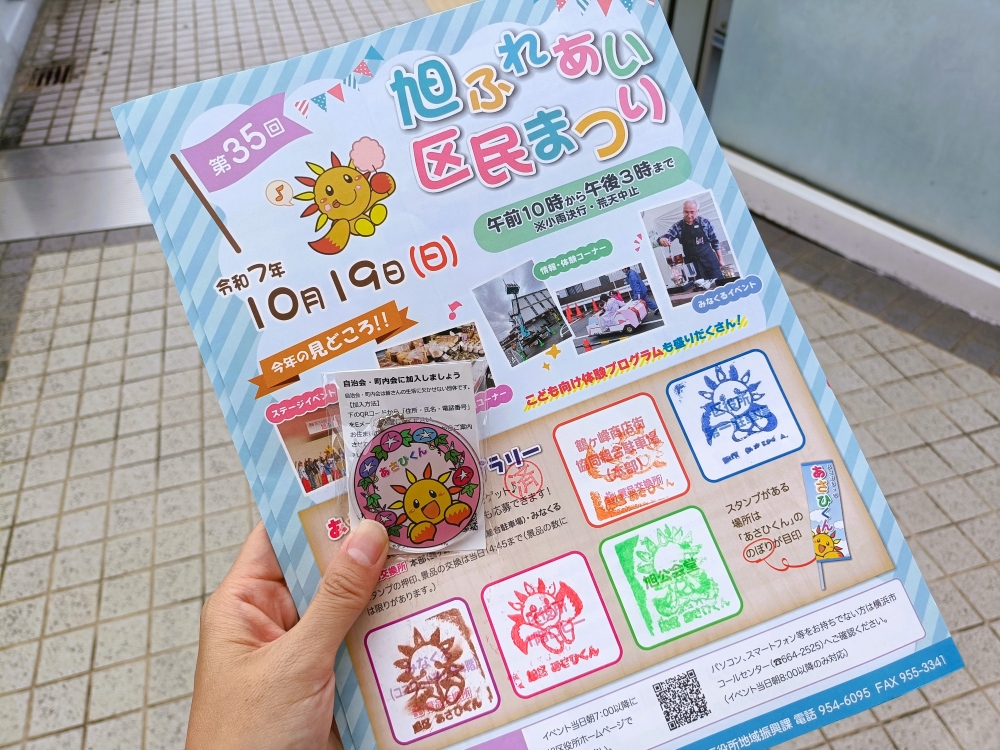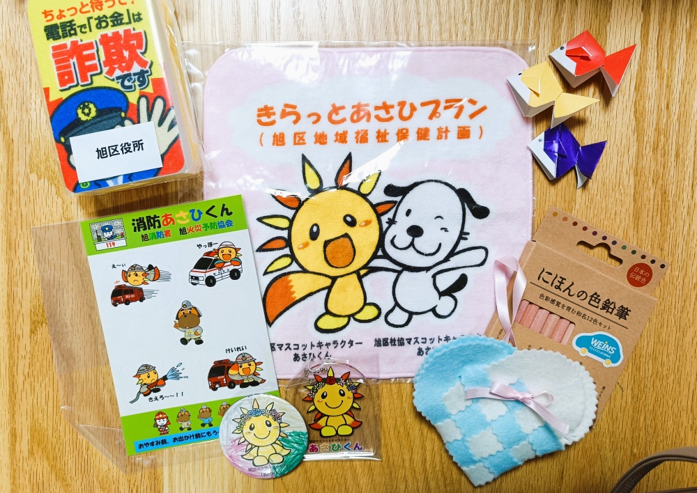 旭ふれあい区民まつりのスタンプラリーも無事終わり、景品にかわいいあさひくんキーホルダーをいただきました。