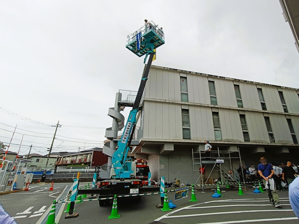 横浜建設業協会旭区会がおこなう高所作業者体験も、1日中列が長くのびていました。