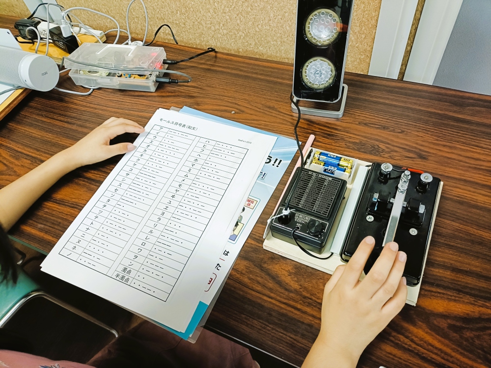 珍しい体験といえば、横浜市アマチュア無線非常通信協力会 旭区支部主催のブースでは、モールス信号や無線を使った交信体験ができました。