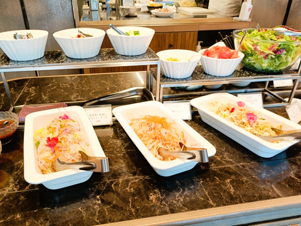 卓上のQRコードからメイン料理を注文したあとは、さっそくビュッフェへ。まずは前菜・スープコーナーに行ってみると、なんと豪華……!