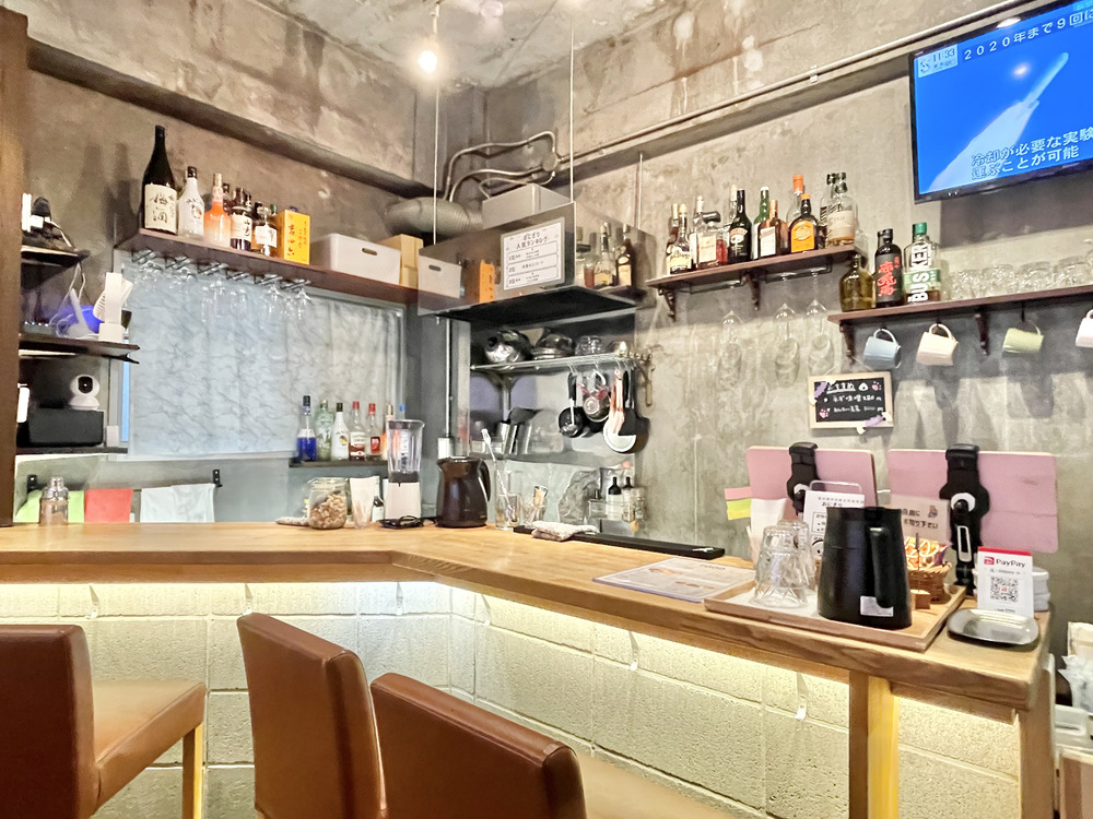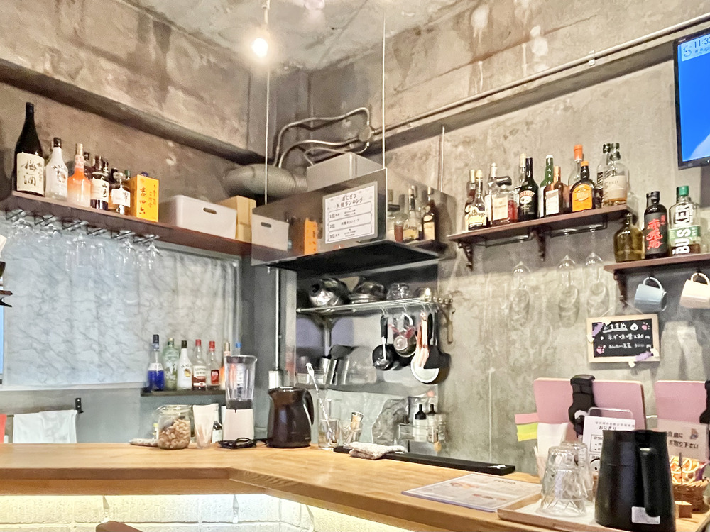 カウンターの前にはたくさんのお酒が並び、「カフェだけどお酒も楽しめるんだ」とちょっとワクワク。