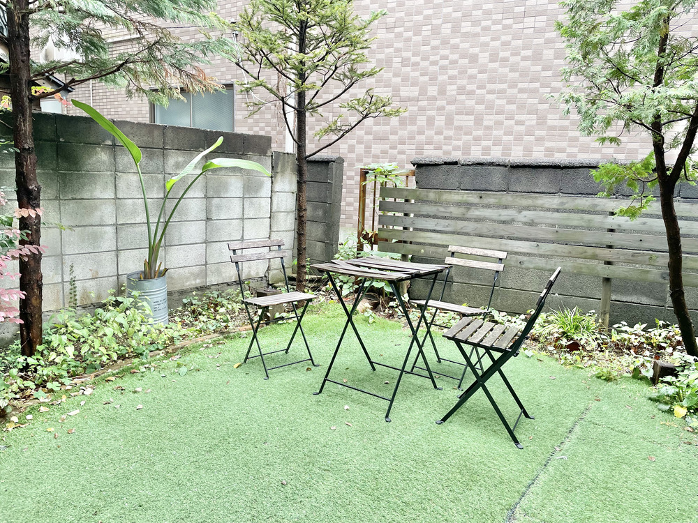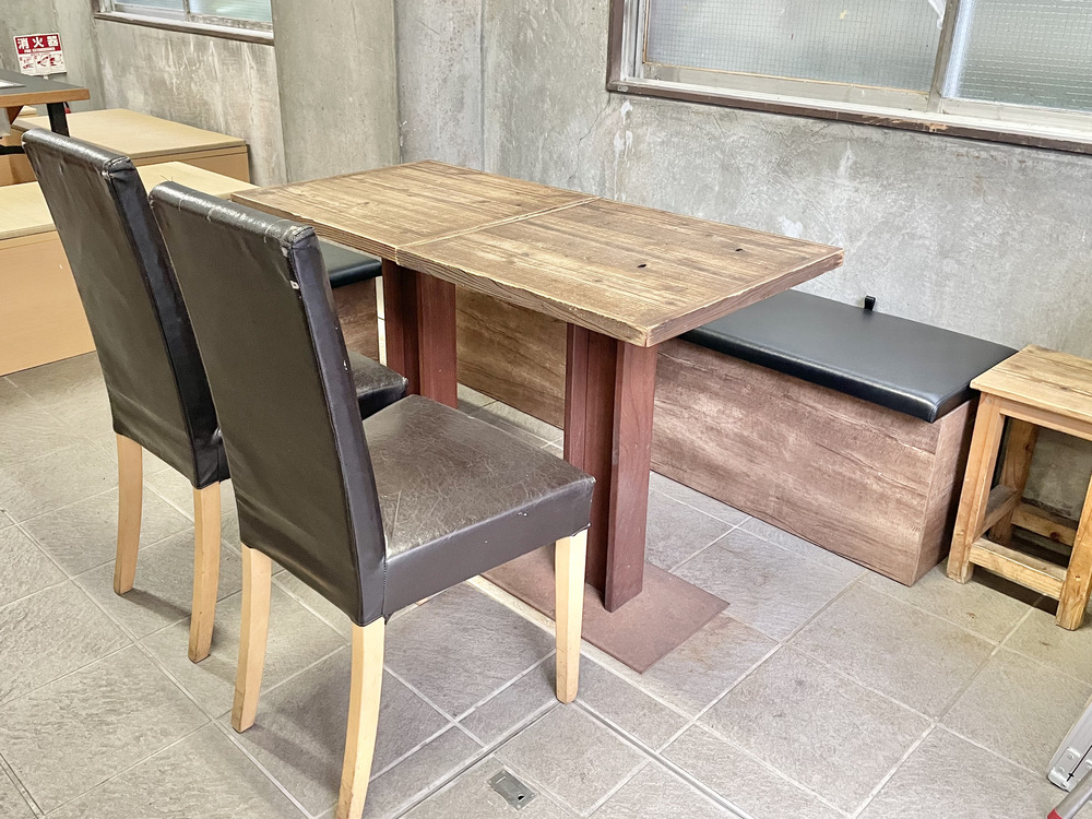 お店の外には、建物内にあるテーブル席が設けられていて、屋根があるため雨の日でも安心です。