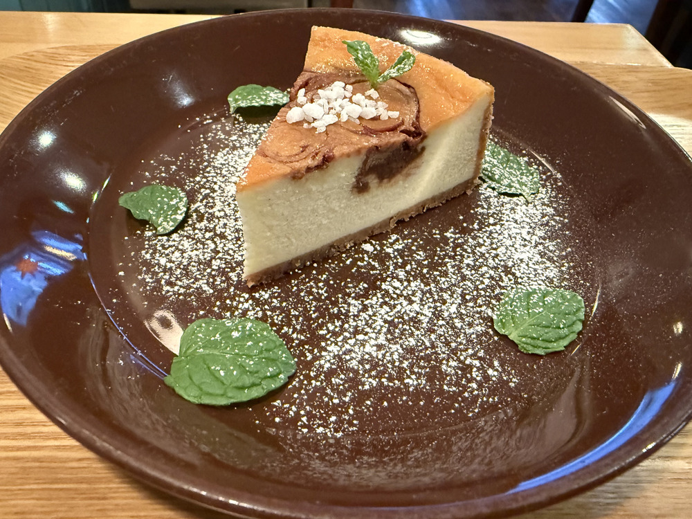 デザートの「シナモンロール風チーズケーキ」はまさに名前の通り、シナモンのスパイスが効いた大人な味のチーズケーキでした。