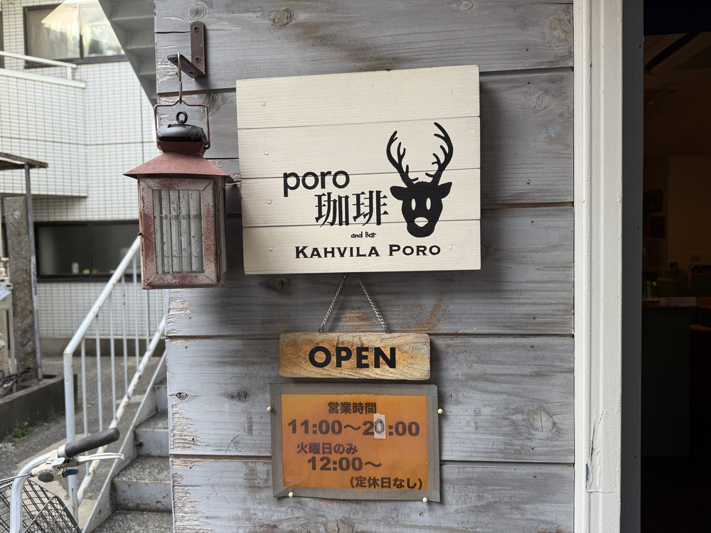 「poro珈琲」と書かれた木製の看板がとってもかわいいです。