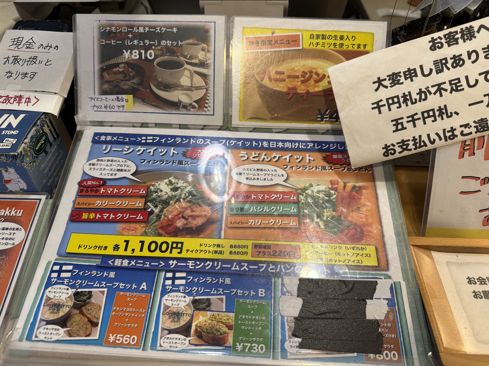 今回は頼まなかったのですが、軽食メニューとして「サーモンクリームスープとサンドイッチのセット」もありました。