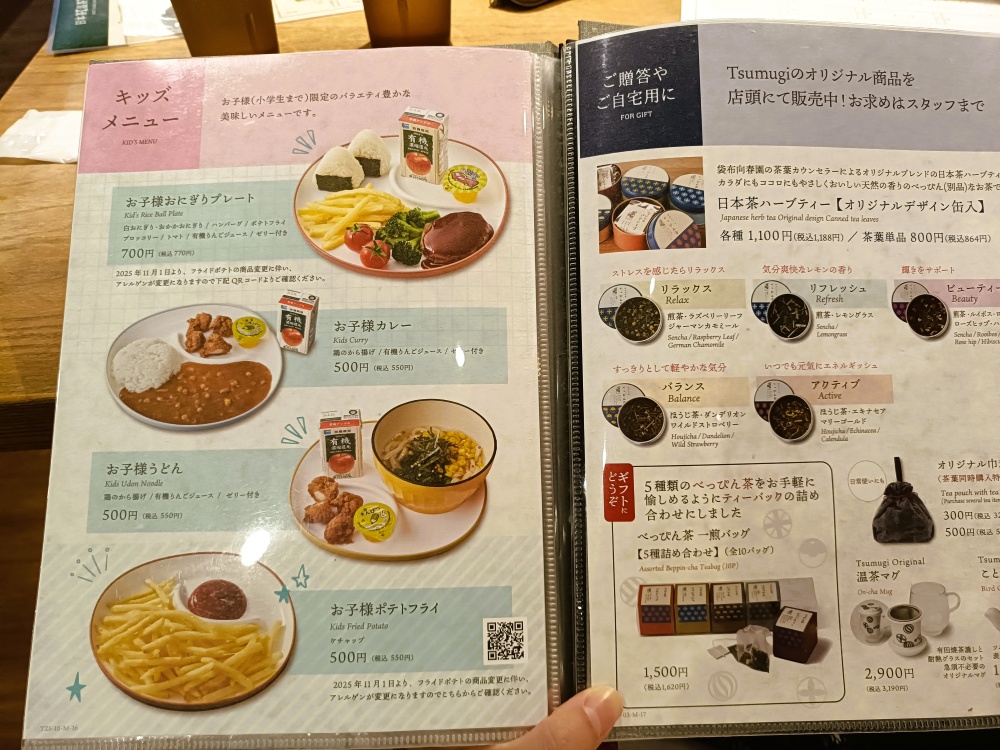 キッズメニューは4種類。うどんやおにぎりプレートなどがありました。