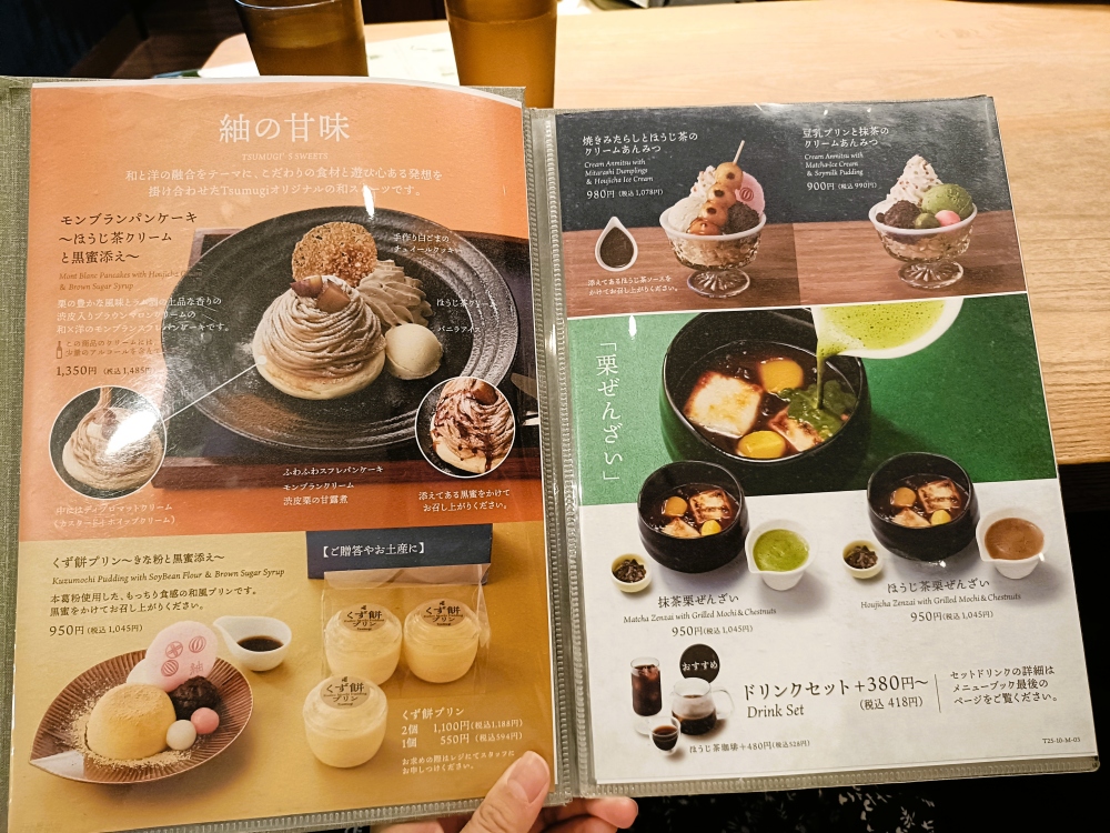 和カフェTsumugiは、創業160年の日本茶専門店「袋布向春園本店」の7代目当主とコラボし、厳選された茶葉を使ったオリジナルドリンクも多数取り揃えています。