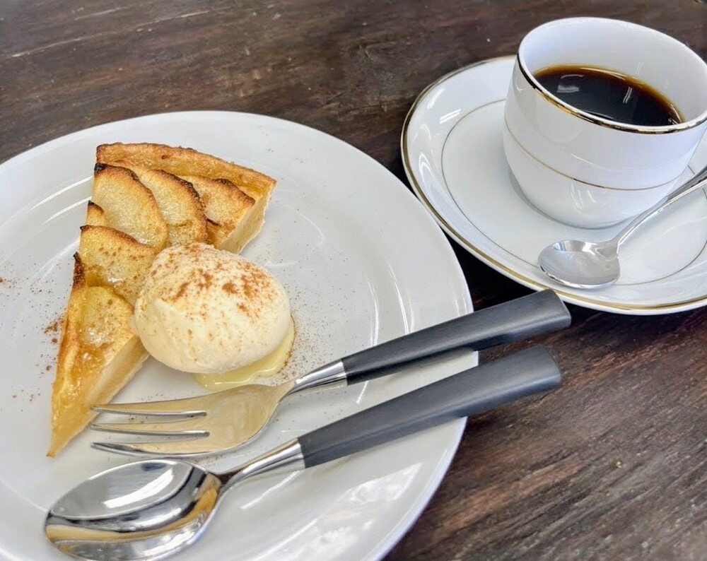 サクッと香ばしいタルト生地に甘酸っぱいリンゴがぎゅっと詰まり、シナモンの香りがアクセントになっています。コーヒーとの相性も抜群で、午後のひとときを華やかに彩る一皿です。