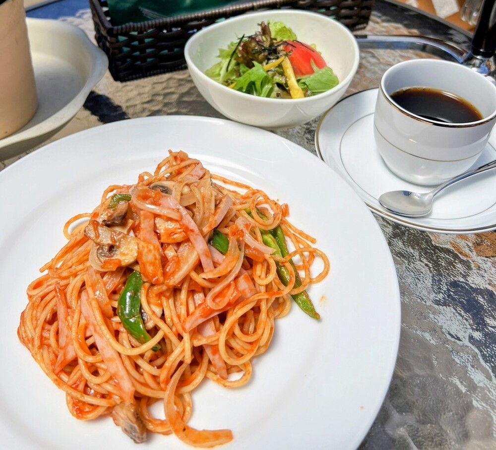ランチタイムには、昔なつかしいナポリタン、ミックスサンド、カレーライスやピザなど、気取らないけれどしっかり満足できるメニューが並びます。小腹を満たしたいときにもぴったりで、幅広い世代に喜ばれる内容になっています。