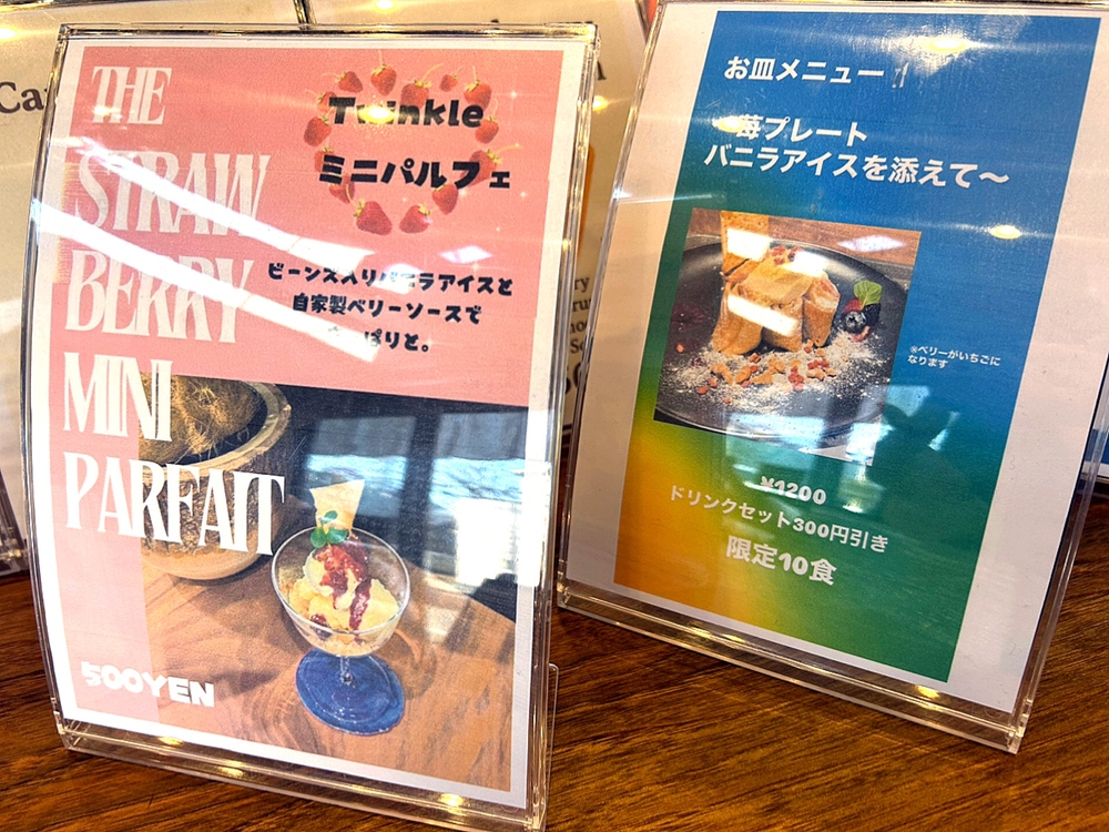 アイスを使ったスイーツクレープのプレートや、お子さんにちょうどよいサイズのミニパルフェも人気のよう。