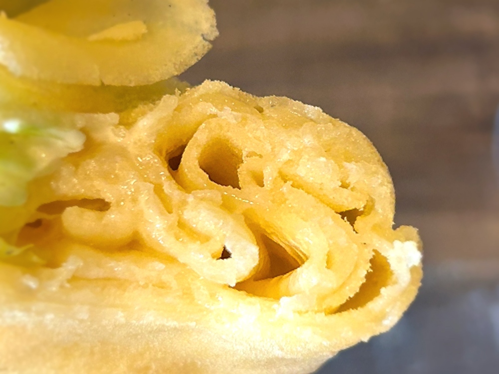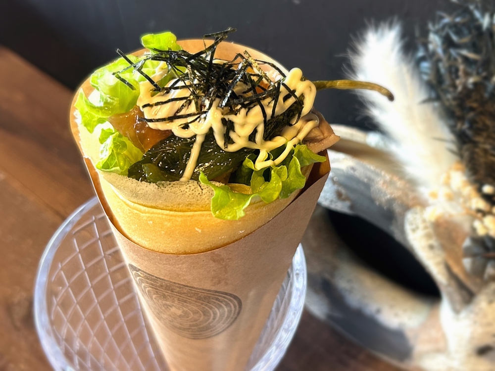 米粉生地は、薄いところはサクサク、中はもちもちで軽い食べ心地。ほんのりとした甘みで、甘じょっぱいお食事系の味にもマッチしています。