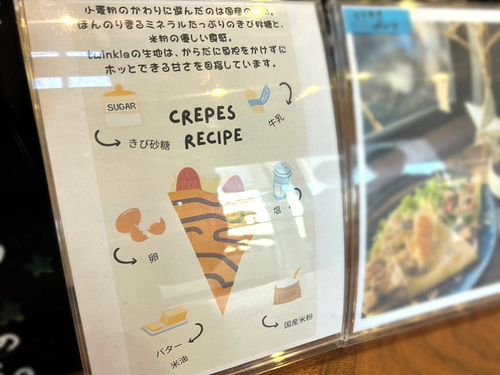 Twinkleさんでいただけるクレープの特徴は、何といっても国産米粉100%で作られたグルテンフリーの生地。