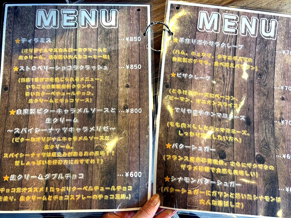 さっそく、クレープとドリンクのラインナップをチェックしてみましょう。