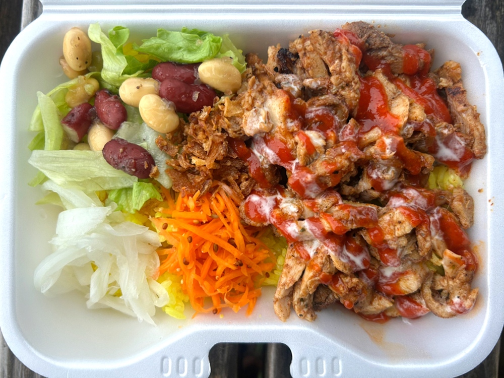 チキンオーバーライスは、数種類のスパイスで味付けした鶏肉を、野菜と共にご飯にトッピングしたもの。トルコのハラール料理がルーツですが、今はニューヨークの屋台飯として人気で、忙しいオフィスワーカーの胃袋を支えているそうです。
