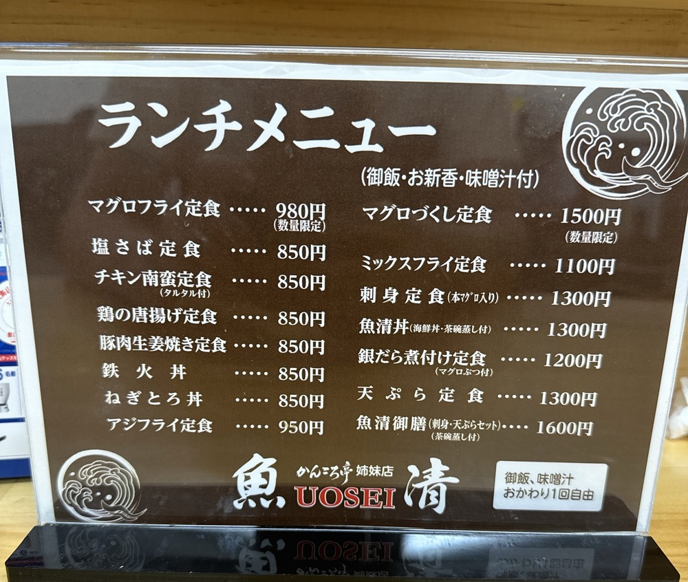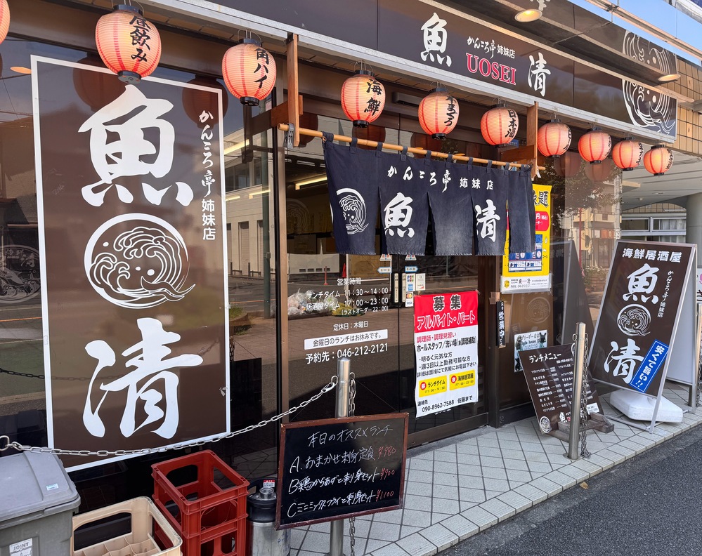 さがみ野駅北口から徒歩約4分の場所にある「魚清」。同じくさがみ野にあり、地元の方に親しまれる人気店「かんころ亭」の姉妹店として知られており、魚料理を中心に豊富なメニューを楽しめるお店です。