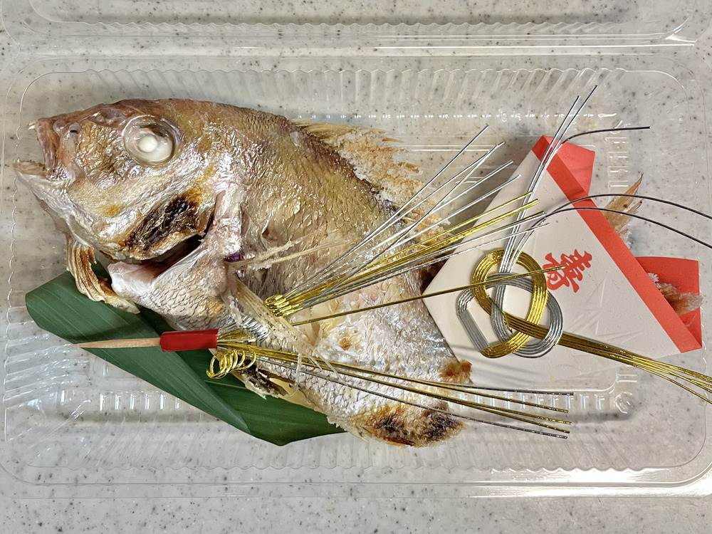 お祝いで用意された鯛は持ち帰りが可能。
