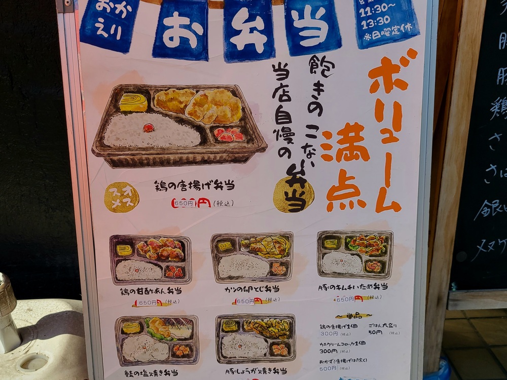 お店入り口の横にお弁当メニューの看板がありました。
