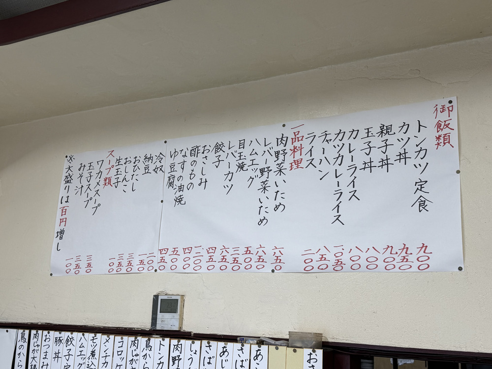 そのほかにもカツ丼や親子丼などのボリュームのあるものや、一品料理も充実していました。