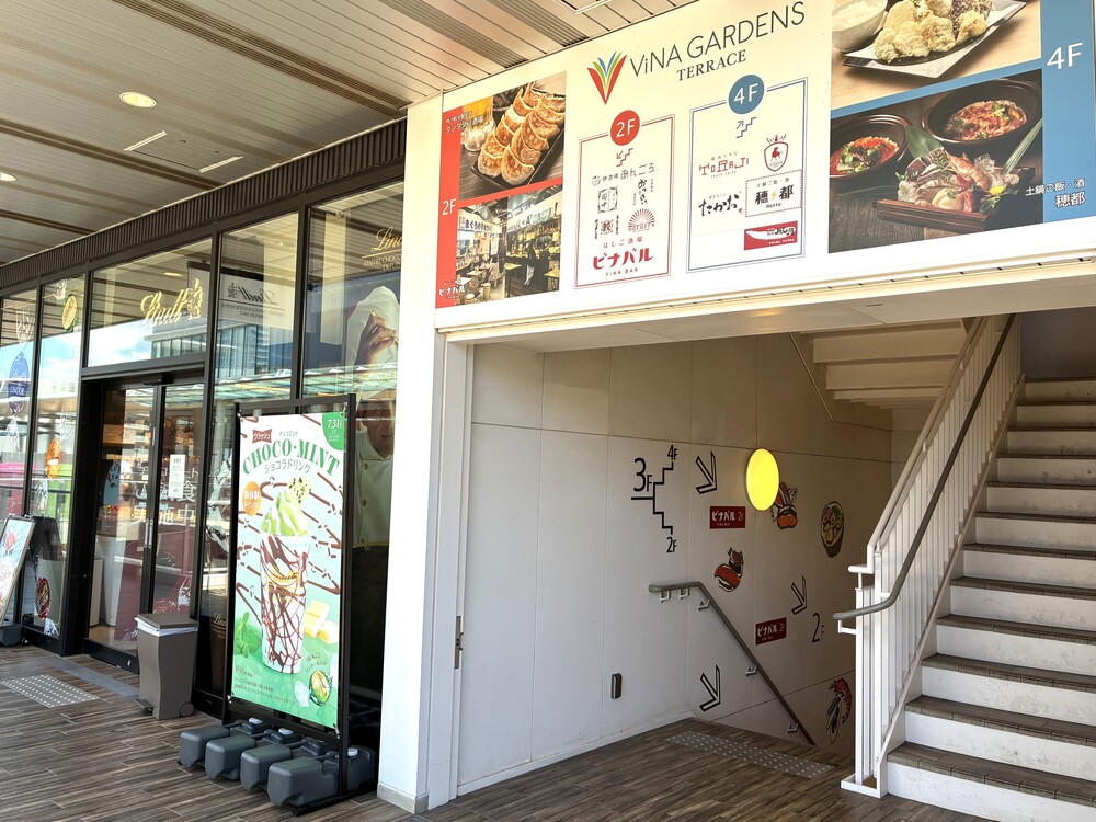 チョコレート専門店リンツのとなりにある階段を下り、飲食店が集まるビナバルの中へ。
