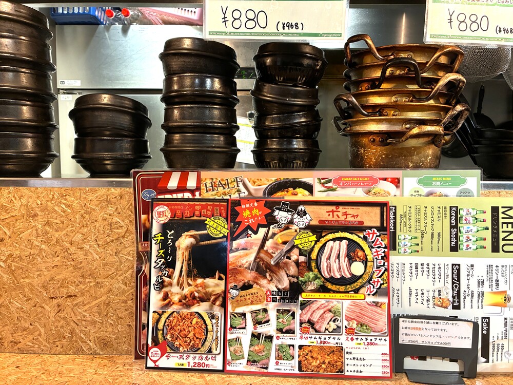 ポチャではリーズナブルなおつまみメニューの他に、韓国の焼肉サムギョプサルやチーズタッカルビが人気商品となっています。