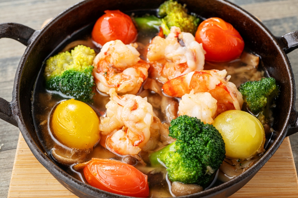 途中でいただいたアヒージョは、にんにくの香りと具材の旨みがしっかりと感じられる一皿。