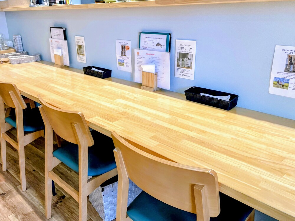 店内に入ると、カウンターとテーブル席があり、ひとりでもグループでも過ごしやすい印象です。