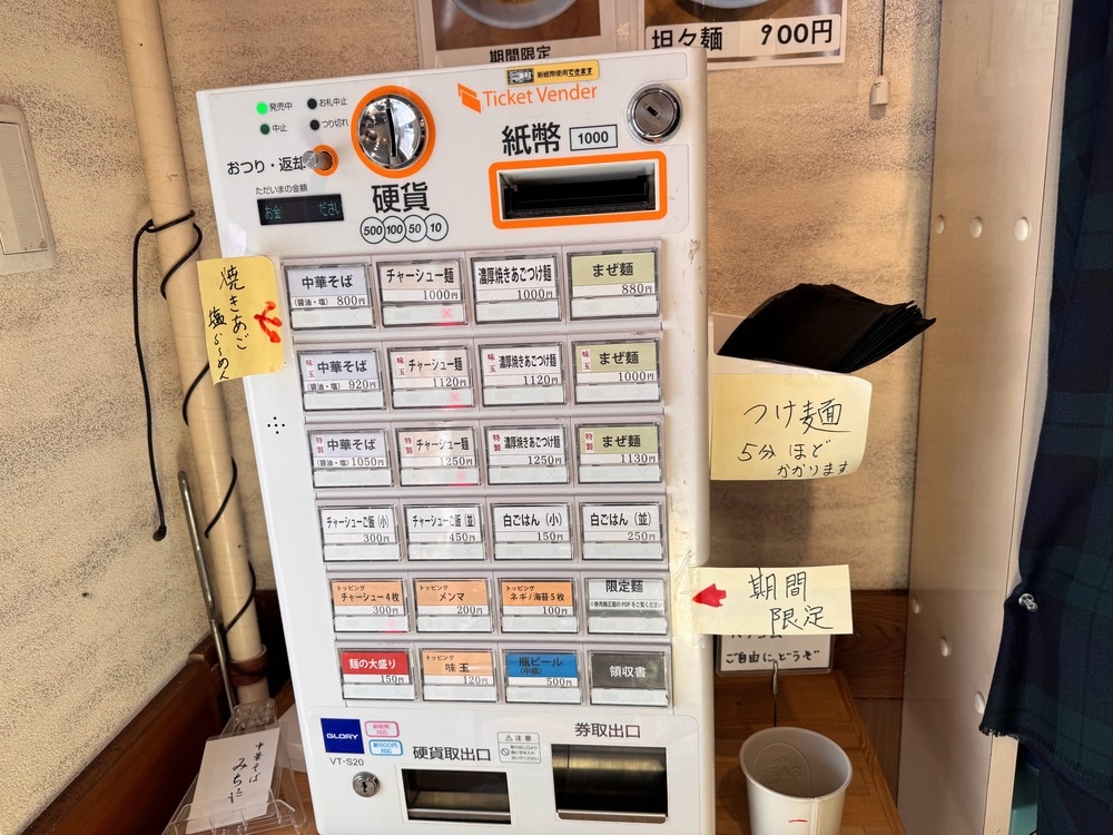 店内に入ると左手に発券機があり、まずは食券を購入するスタイル。