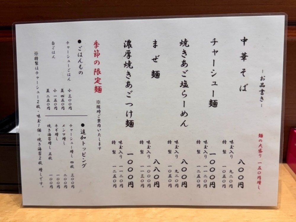 訪れた日は担々麺が登場しており、夏季には冷やし焼きあご中華そばも提供していたそうです。