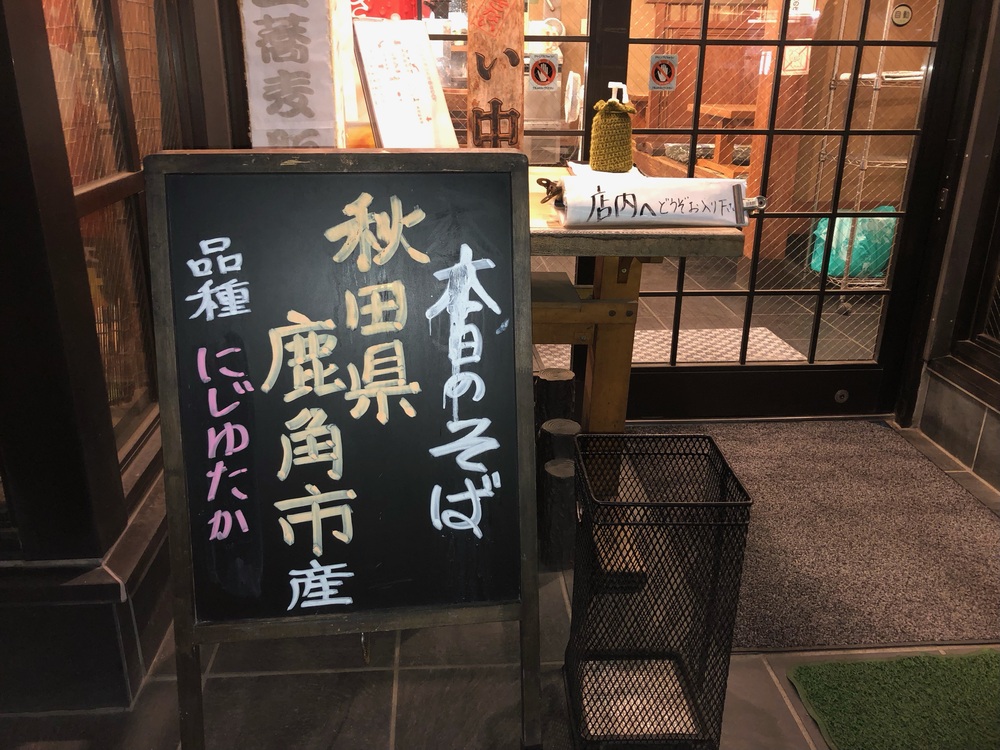 その日に使う蕎麦の実は、このようにお店の前にある看板に「本日のそば」として記載されています。