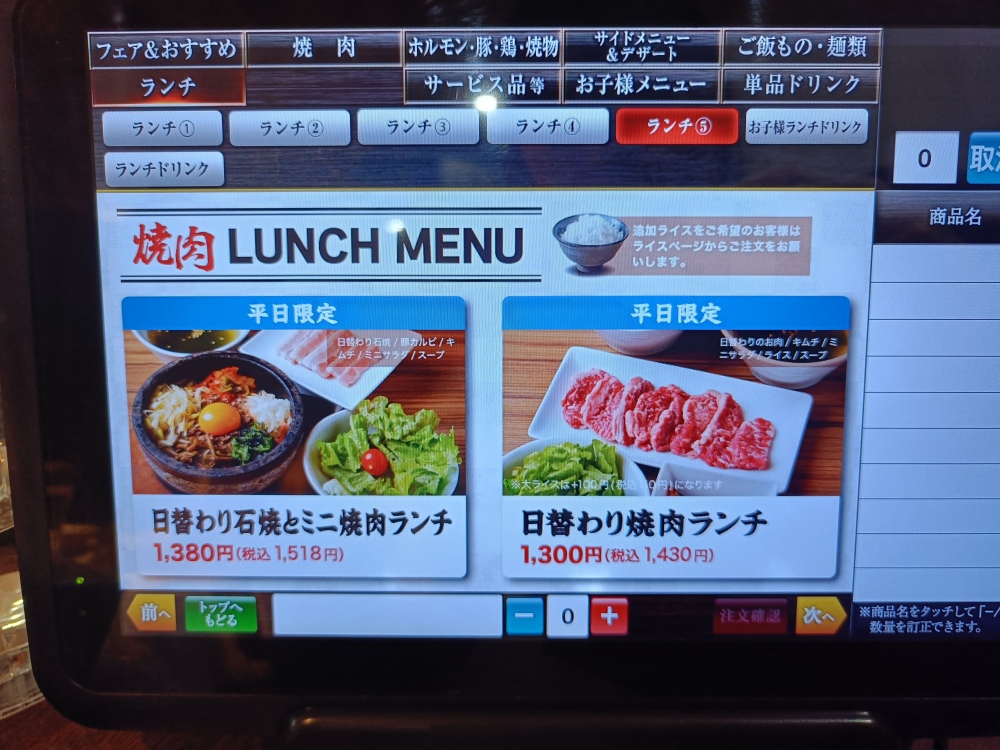 今回は平日限定のランチメニューから、日替わり焼肉ランチを選びました。