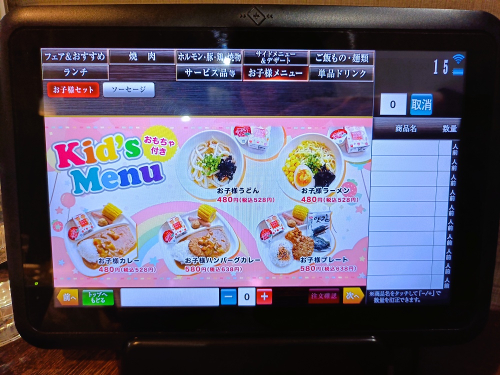 ちなみにお子様メニューは、うどんやラーメンなど5種類がありました。