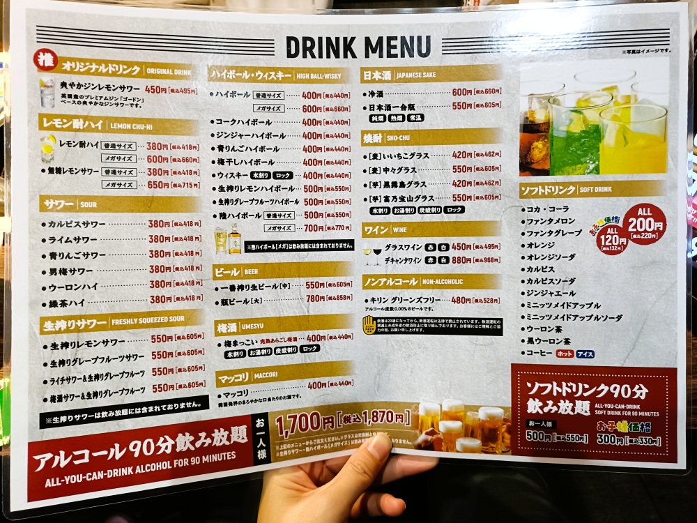 ドリンクの種類も豊富で、飲み放題のプランもありました。