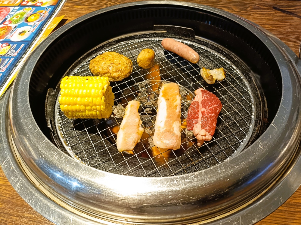 我が子は韓国海苔に惹かれて、お子様プレートを注文。とうもろこしやソーセージを網で焼いて、一緒に焼肉気分を味わえそうです。