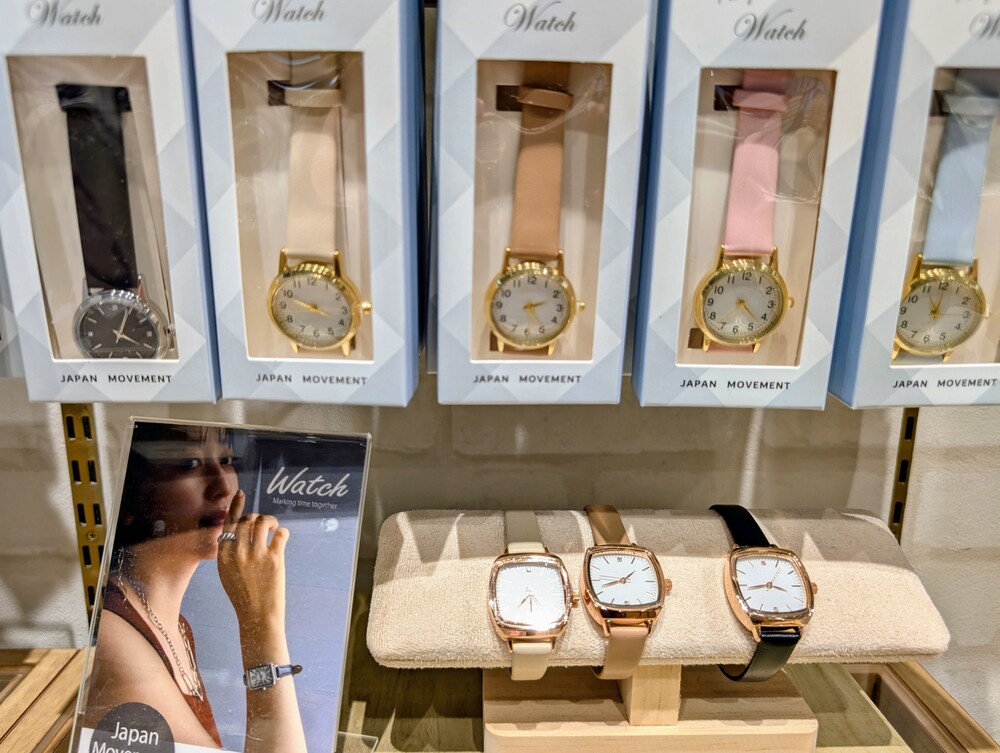 店内を見ていると、アクセサリーの棚だけでなく、バッグや時計、財布などの小物も並んでいることに気づきます。