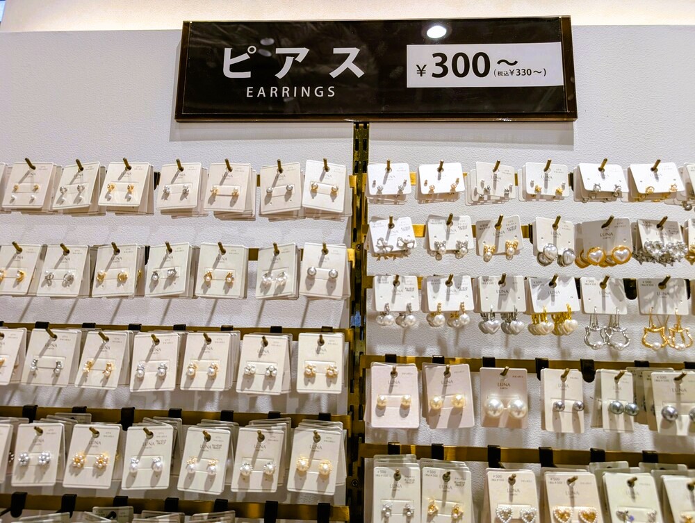 店内を見ていて印象的だったのが、イヤリングの種類がしっかり揃っていること。