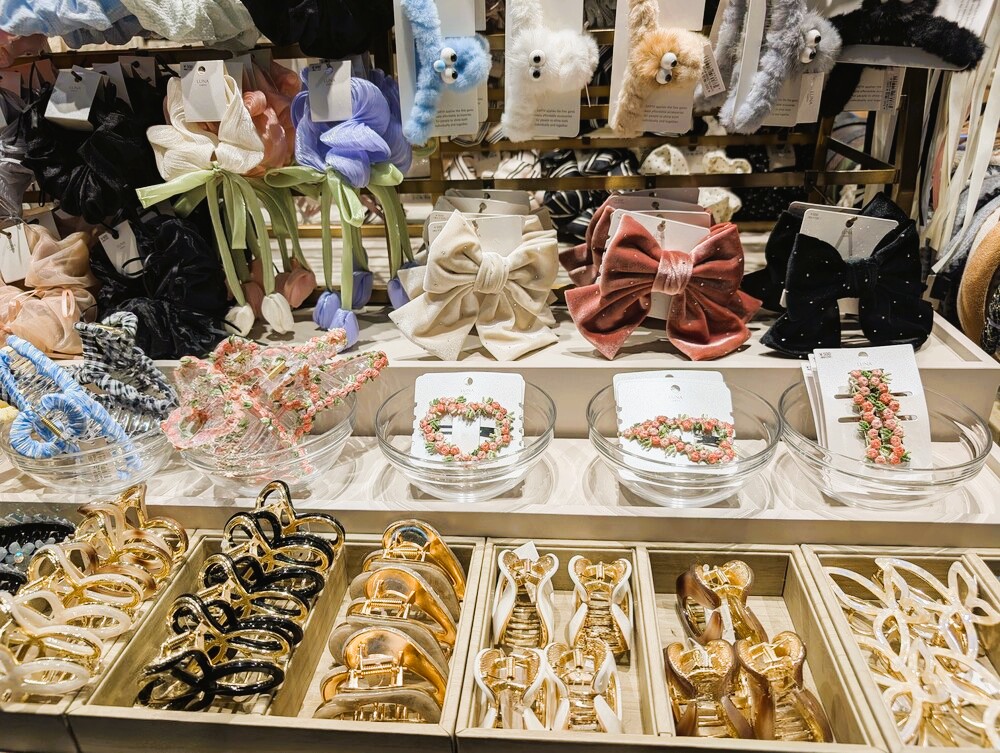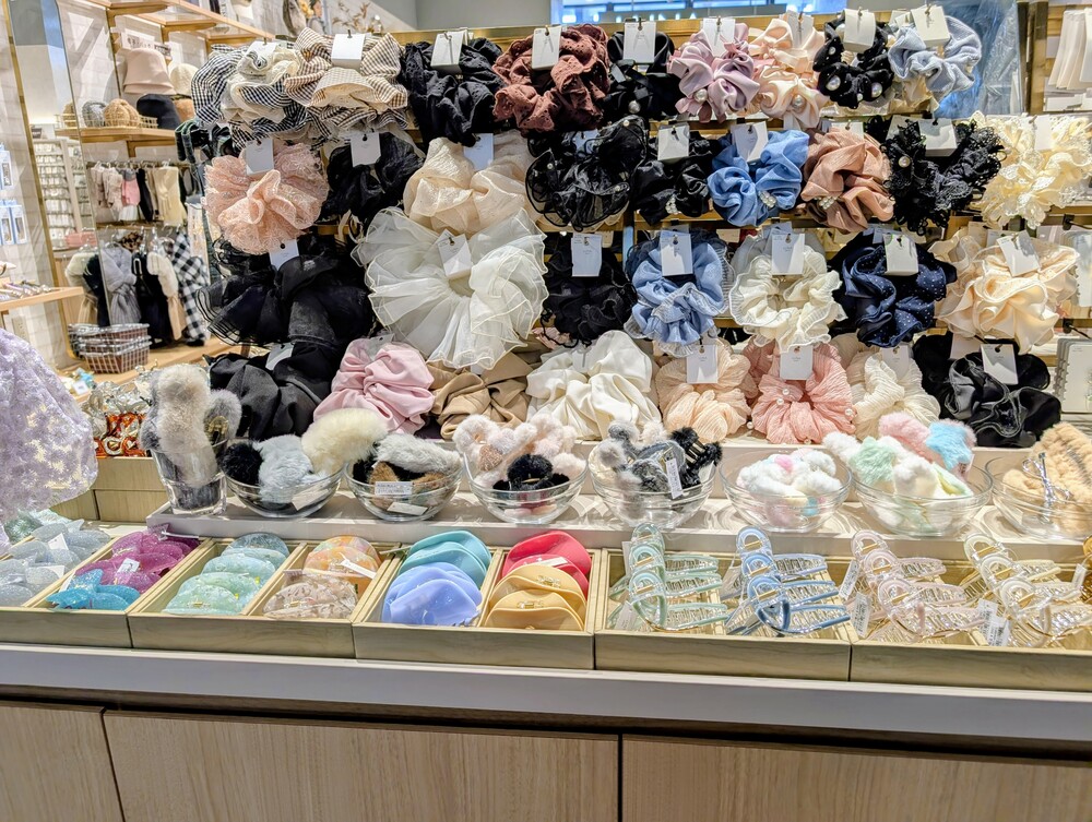 アクセサリーだけでなく、ヘアゴムやバレッタ、ヘアクリップなども充実。