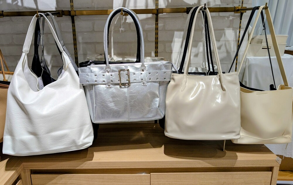 淡い色合いのバッグは、普段の買い物やちょっとした外出にちょうどよさそうなサイズ感。肩に掛けやすく、軽さも意識されたデザインが多い印象です。