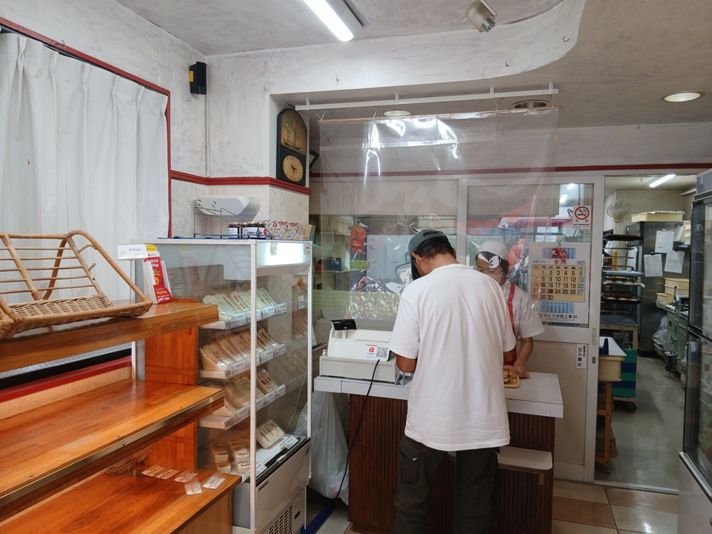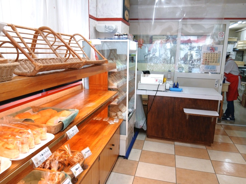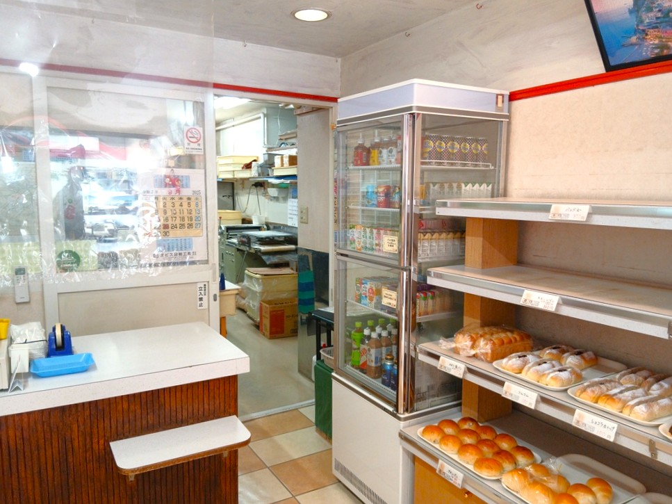 レジ奥には、ちょっとだけ焼き上がりのパンを置く棚が見えています。