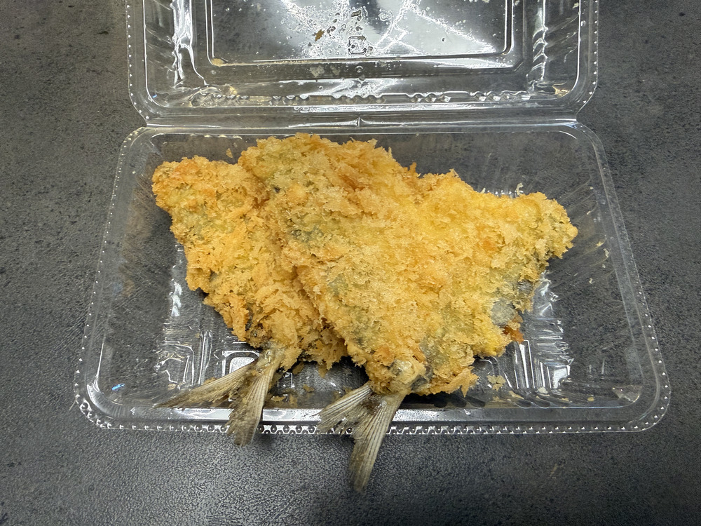 アジフライは粗目の生パン粉でザクザクとした食感。アジは肉厚で食べ応えがあり、1枚で大満足でした!