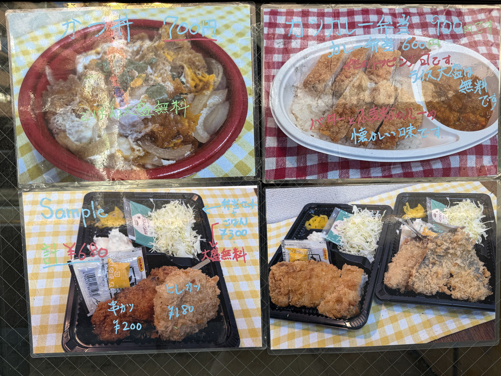 店内にはお弁当やカレー、丼物、揚げ物のメニューがありました。