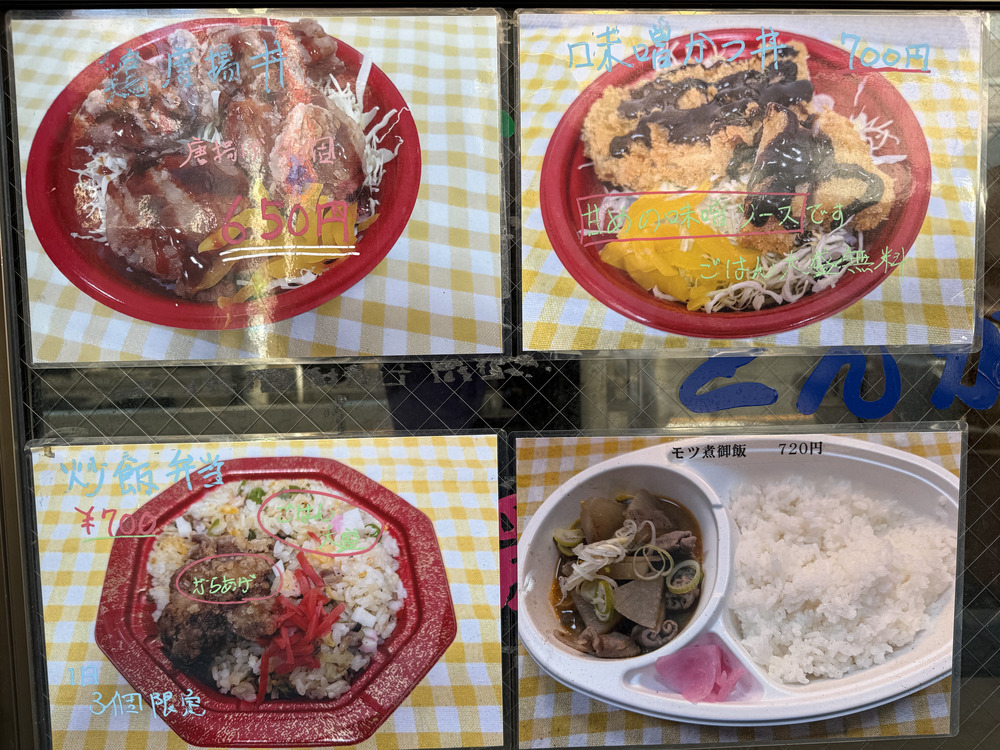 モツ煮御飯や炒飯弁当もあります。どれにしようか悩みますね!