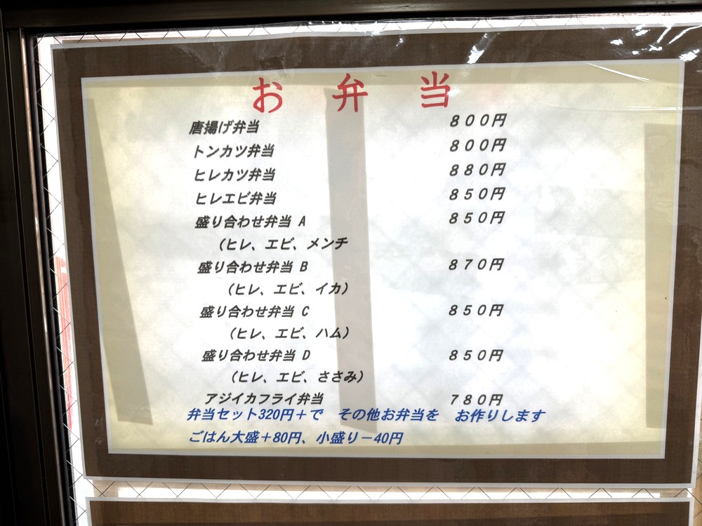ガラス扉にはメニュー表やお弁当の写真が貼られていて、一目でお弁当屋さんとわかります。