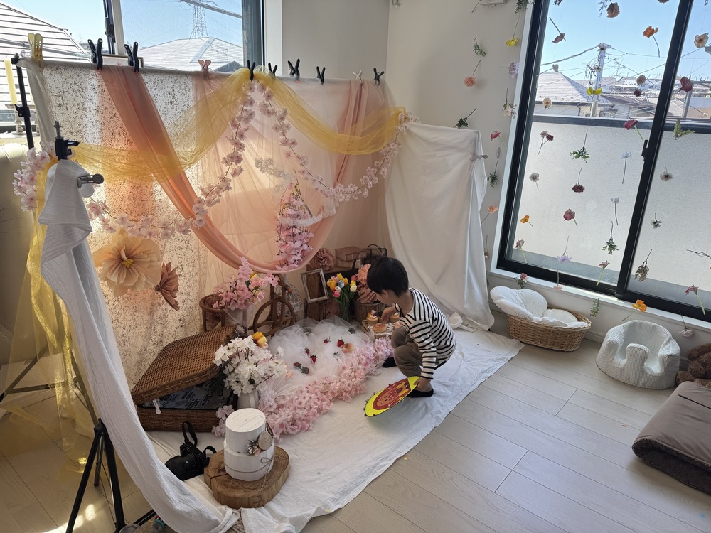 撮影スペースには手作りの装飾がたくさん並び、りささんのお子さんものびのびと遊んでいて、「ああ、こういう場所なら家族で通いたくなるな」と、自然と思えました。
