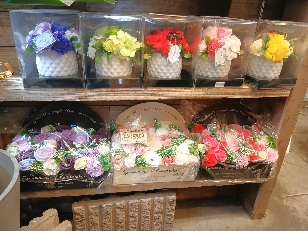 また、店内のカウンター付近には最近人気の「シャボンフラワー」もありました。