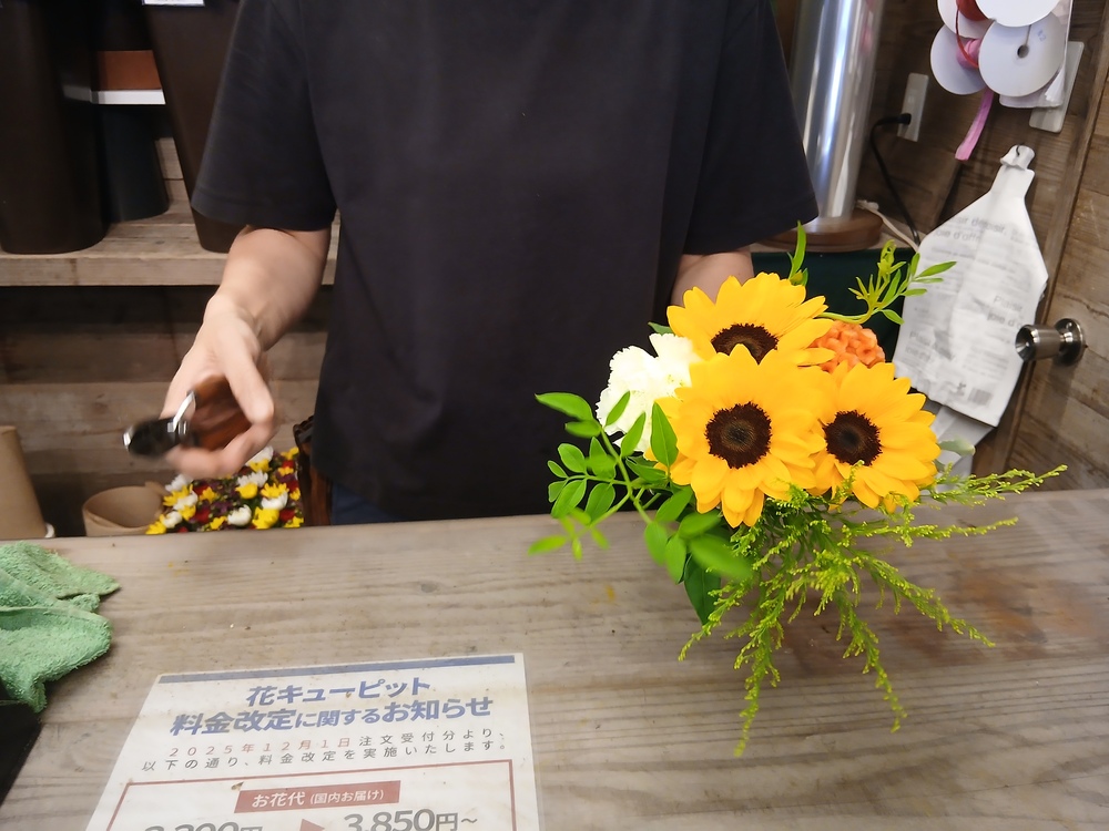 私は、相手の「ひまわりのように明るい」というイメージや、日持ちなどを視野にいれていただき作ってもらうことにしました。
