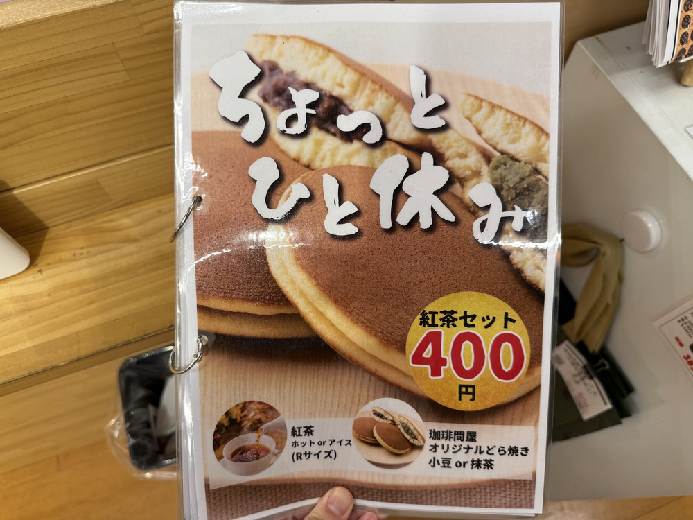 オリジナルのどら焼きと紅茶のセットメニューもありました。