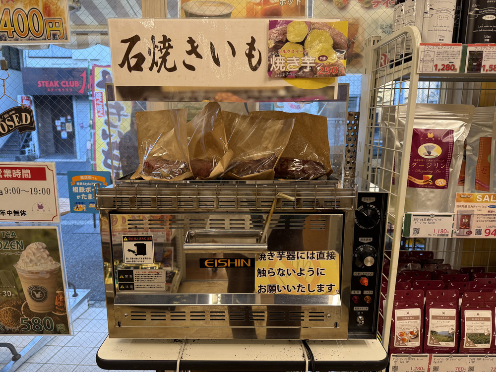 入口付近には焼き芋もあって、紅茶専門店の枠を超えた品揃えです!
