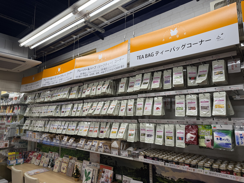 まず目に留まったのは、常時100種類以上取り揃えている紅茶やハーブティー、フレーバーティーのコーナーです。