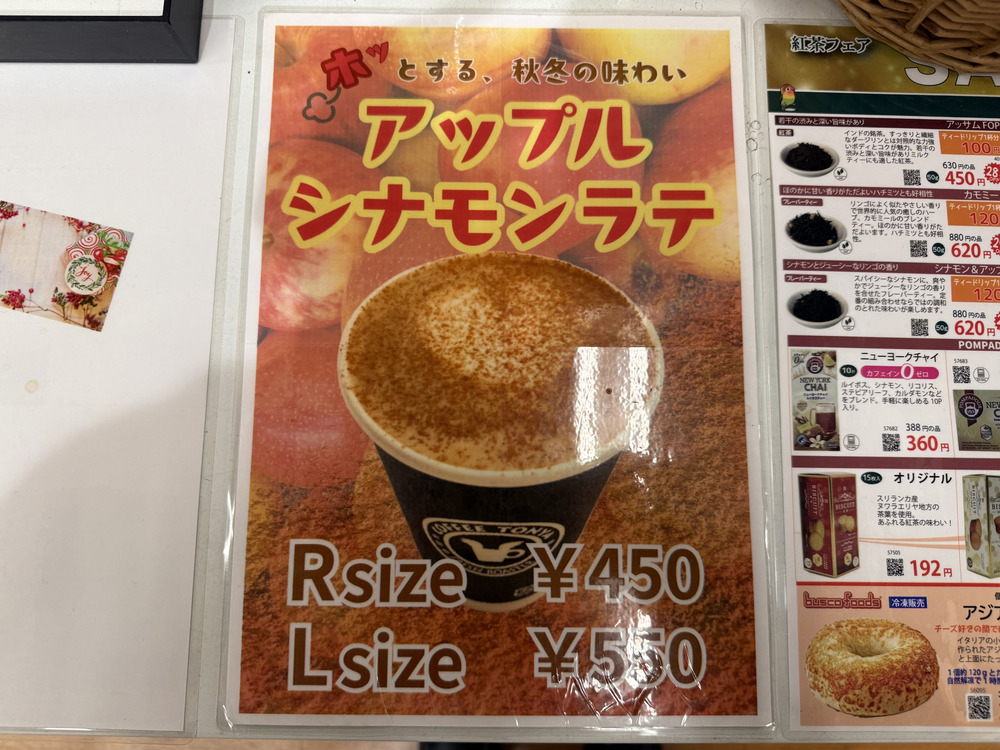 甘さがひかえめでシナモンの香りが鼻に抜け、やわらかいフォームミルクとリンゴの果肉も味わえました。