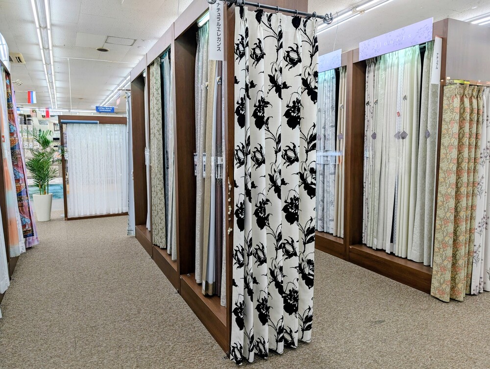 「カーテンって、こんなに種類があるんだ」と思わず足を止めてしまいます。